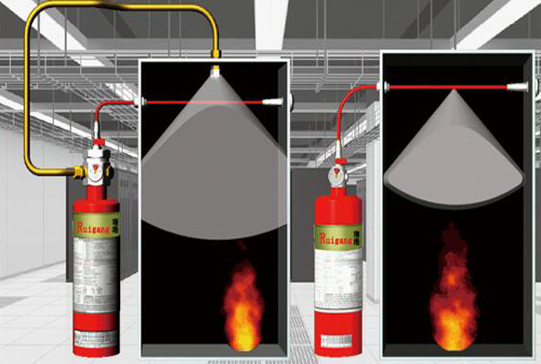 火探管通過容器閥連接到滅火劑容器上,進(jìn)行火源探測(cè),遇火時(shí)火探管爆破,利用火探管中的壓力下降,啟動(dòng)容器閥,通過釋放管至噴嘴把滅火劑釋放出來。